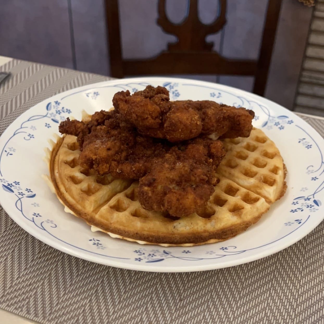 Growing up, birthdays in our house meant fried chicken and waffles. My mother made it, we ate it at the table, and at some point it stopped being a birthday thing and became the thing we associated with being taken care of. A thousand calories before 10am, completely impractical, entirely the point.